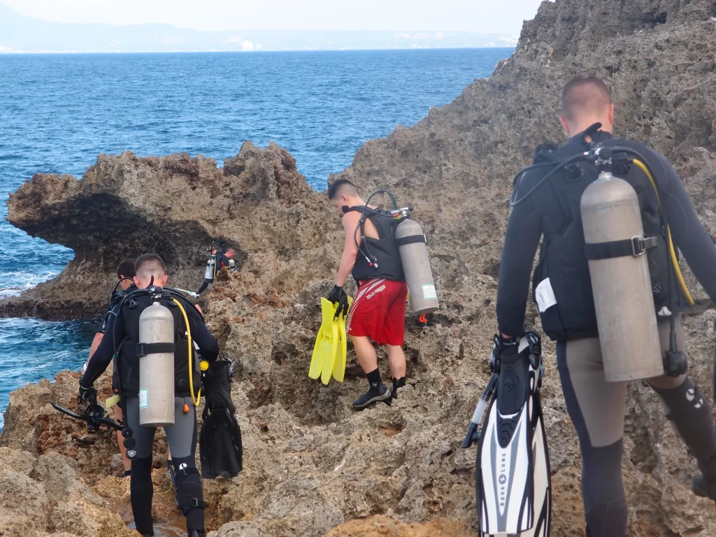 潮位が高い時間帯だと ビーチダイビングなのに ジャイアントスライドエントリーが可能です